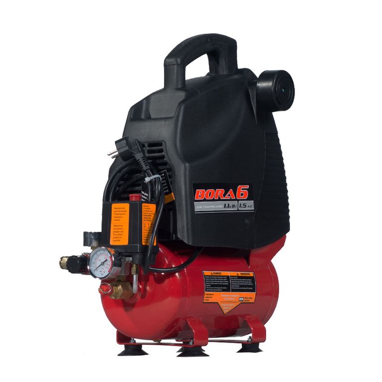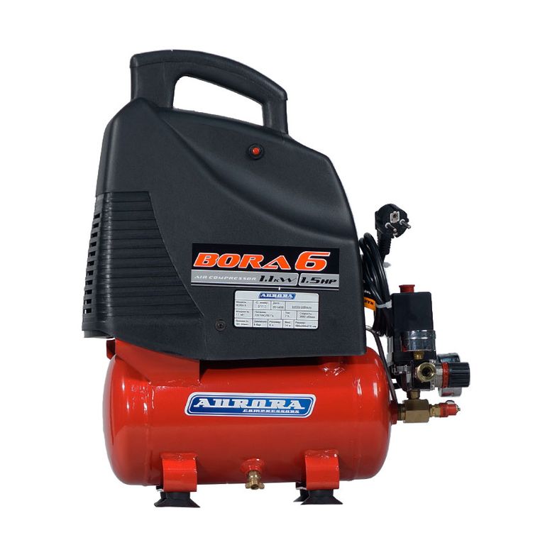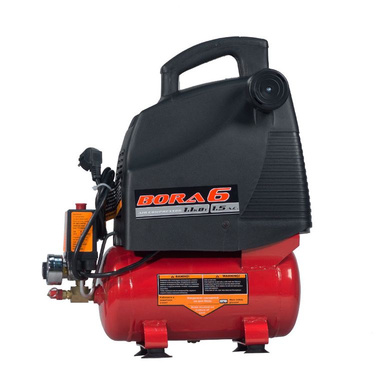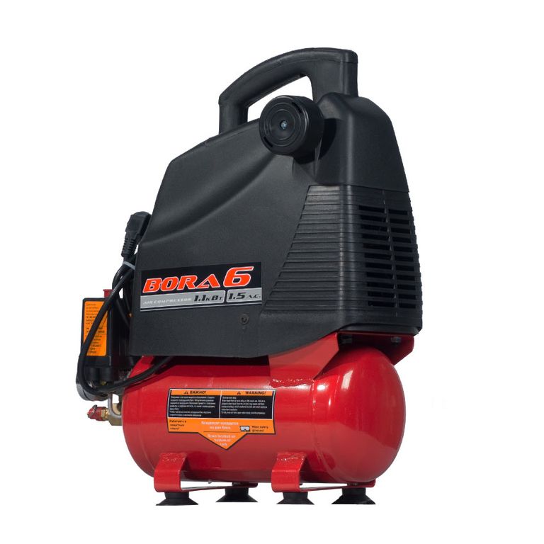 Воздушный поршневой безмасляный компрессор прямого привода (коаксиальный) BORA-6, удобен в использовании и прост в обслуживании. Обладает преимуществами компактной конструкции, привлекательного дизайна, высоким уровнем безопасности в применении. «Сухой» компрессор BORA-6 пригодится в быту или в небольшом автосервисе, однако наиболее востребовано данное устройство будет у художников-аэрографов, которым не требуется очень высокая производительность и постоянная работа.