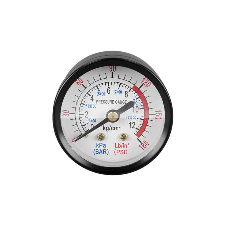 Манометр диам. 50 мм с внешней резьбой 1/4" позволяет отслеживать давление сжатого воздуха на выходе из компрессора, подходит для всех типов компрессоров с максимальным давлением до 12 бар.