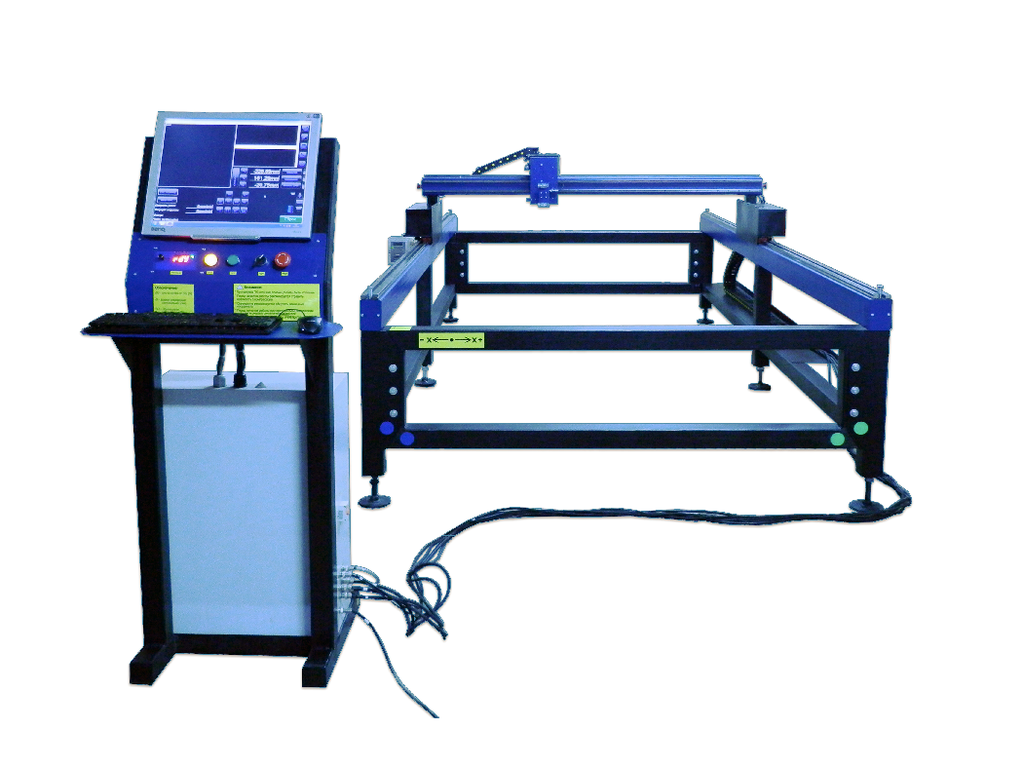 Система управления станком (стойка ЧПУ) представляет из себя отдельный стенд, в котором установлено лицензионное программное обеспечение Mach3 на русском языке. Оператор может наблюдать все режимы работы станка во время резки.