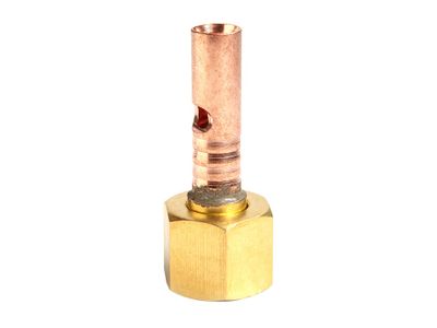 Штуцер устанавливается на водяной шланг аргонодуговой горелки TIG, после чего подключается к блоку охлаждения или сварочному аппарату. Резьба накидной гайки М16x1,5. Соединение под шланг 9 мм. Материал - латунь, медь.