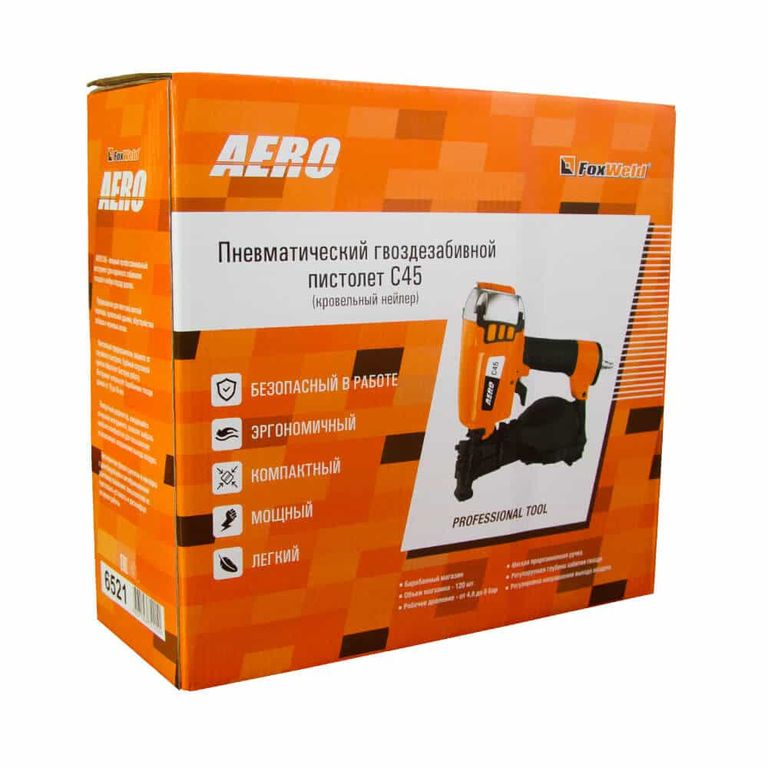 AERO C45 - мощный профессиональный инструмент для надежного забивания гвоздей в любую породу дерева. Предназначен для монтажа мягкой черепицы, кровельной дранки, обустройства заборов и черновых полов. Контактный предохранитель защитит от случайного выстрела. Удобный спусковой крючок обеспечит быструю работу. Инструмент использует барабанные гвозди длиной от 19 до 45 мм.