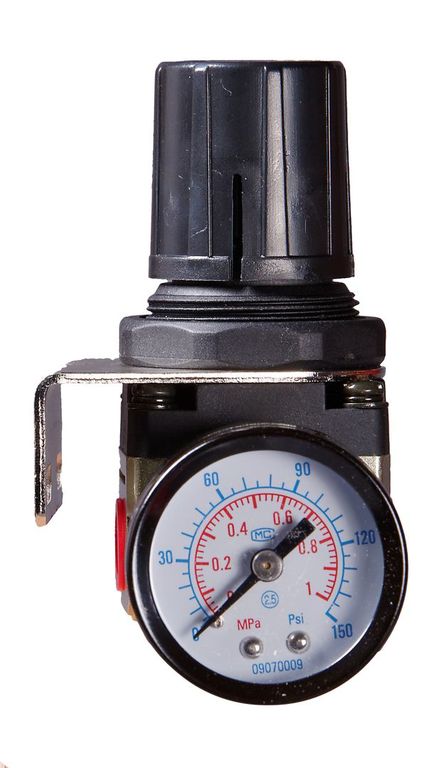 Регулятор используется для контроля давления воздуха, который подается от компрессора. Регулятор отслеживает рабочее давление и при необходимости стравливает воздух.