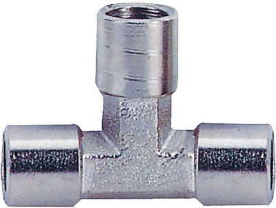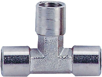 T-образный переходник (тройник) позволяет подсоединить к пневмомагистрали дополнительный участок. Крепление - резьба 3/8".