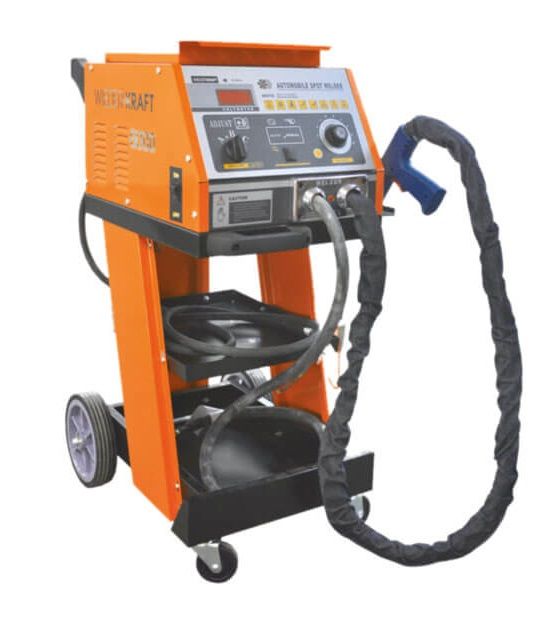 Профессиональный аппарат для выполнения кузовных работ по выравниванию/рихтовке металлических поверхностей, в т. ч. элементов кузова автомобиля. Панель управления оснащена переключателем силы сварочного тока позиционного типа (А-В-С) и регулятором времени импульса сварки для быстрой настройки параметров. Аппарат размещен на тележке, входящей в базовую комплектацию.