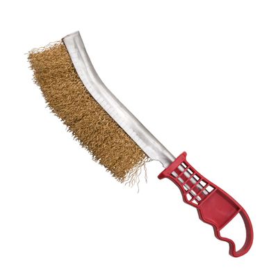Корщетка для зачистки швов (235 мм, латунированная сталь) - это инструмент, который применяется для ручной обработки сварочных швов после сварки, для удаления металлических заусенцев и сварной окалины. Она используется для очистки поверхностей от ржавчины, грязи, старых лакокрасочных покрытий и других загрязнений.