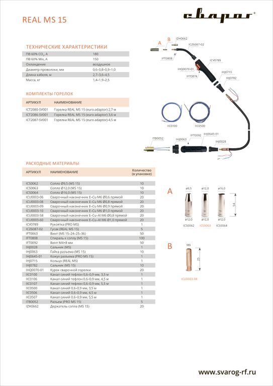 Горелка сварочная Сварог REAL MS 15, 4.5 м, ICT2087-SV001