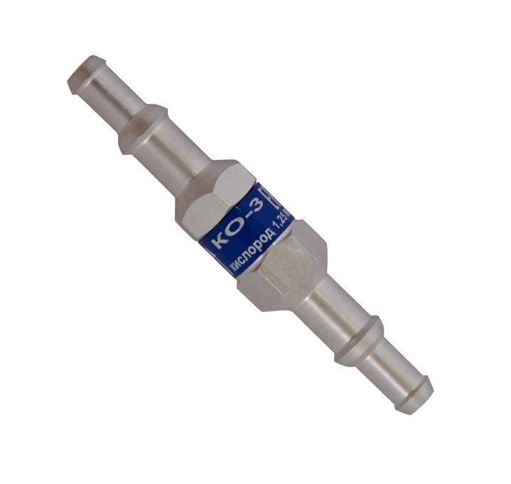 Клапан обратный предназначен для предотвращения обратного потока газа в резиновые рукава при газопламенной обработке металлов. При возникновении перед КО обратного тока газа с давлением, равным или превышающим входное давление газа обеспечивается перекрытие тока газа в обратном направлении.
