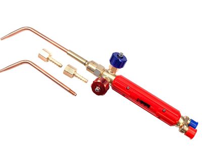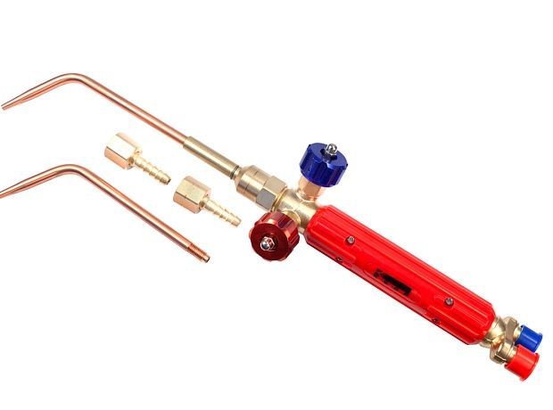 Горелка малой мощности типа Г-2А-02 Малютка предназначена для ручной ацетилена-кислородной сварки, пайки, нагрева и других видов газопламенной обработки металлов. Горелка состоит из рукоятки с запорно-регулировочными вентилями ацетилена и кислорода, присоединительных штуцеров с гайками для крепления газовых рукавов с внутренним диаметром 6мм, смесительного устройства с накидной гайкой, и сменных наконечников. Сменные наконечники цельнотянутые и не содержат мундштука и смесительного устройства. Обе полости разъема смесительного устройства и рукоятки герметизируются резиновыми уплотнительными кольцами, а на торцевой поверхности рукояткии смесительного устройства выполнены шлицы, что позволяет заменять наконечники без применения инструмента, а накидную гайку зажимать от руки.