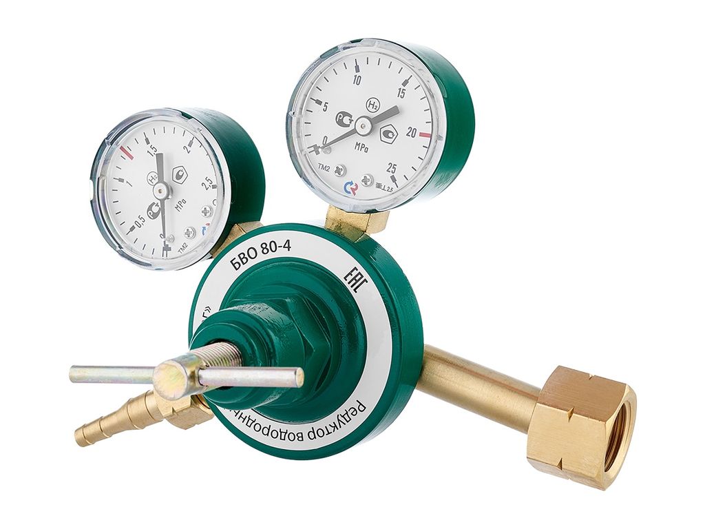 РЕДУКТОР ВОДОРОДНЫЙ БВО 80—4 С ПОВЕРЕННЫМ МАНОМЕТРОМ предназначен для понижения давления поступающего из баллона газа и автоматического поддержания постоянным заданного рабочего давления при газопламенной обработке и смежных процессах. Изготовлен в соответствии с ГОСТ 13861-89.