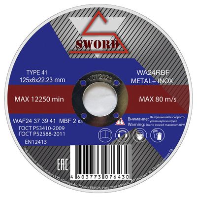 Круг шлифовальный SWORD 125х6.0х22.2 A 24 RBF METALL+INOX