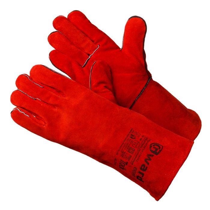 Цельноспилковые сварочные краги с подкладом. Сшиты из высококачественного спилка КРС красного цвета