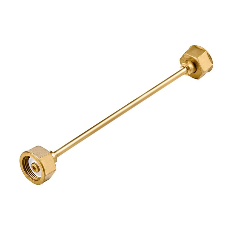 Устройство для перекачки газов из баллона объемом 40 литров в баллоны аналогичного объема. Устройство состоит из латунной трубки длиной 250 мм с накидными гайками G3/4–G3/4 и полиуретановыми прокладками.