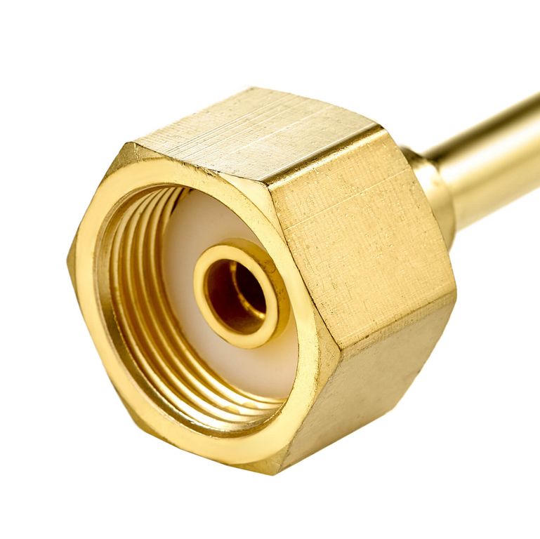 Устройство для перекачки газов из баллона объемом 40 литров в баллоны малого объема (до 10 литров). Устройство состоит из латунной трубки длиной 850 мм с накидными гайками G3/4–W21,8 и полиуретановыми прокладками.