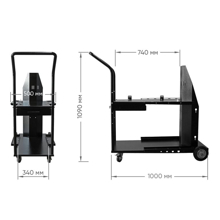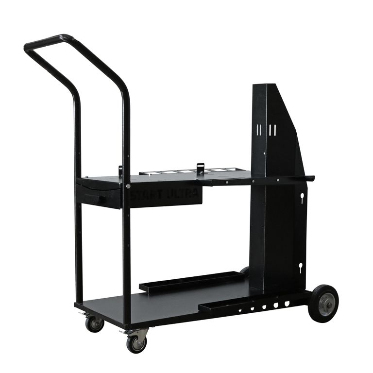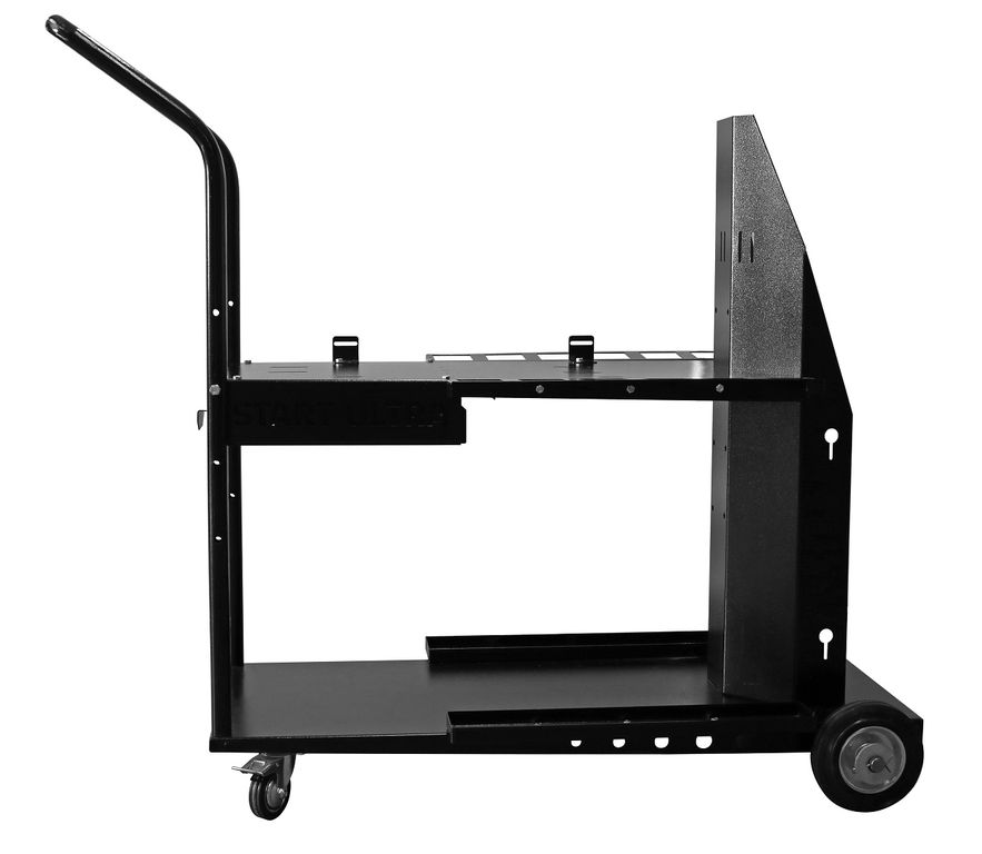 START ULTRA - тележка с передними поворотными колесами и двумя полками для размещения оборудования, сварочных и расходных материалов. Идеальное решение для удобной и мобильной организации сварочного процесса. Конструкция тележки позволяет размещать источник в паре с блоком водяного охлаждения.
