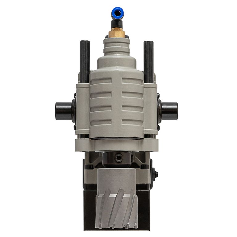 Низкопрофильный станок на магнитном основании для труднодоступных мест мощностью 1880 Вт. Подходит для кольцевых и спиральных сверл Weldon с максимальной глубиной сверления 55 мм. Рукоять механизма рабочего хода может использоваться с двух сторон станка. В комплекте бачок подачи СОЖ.