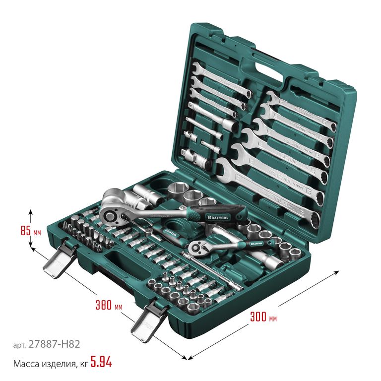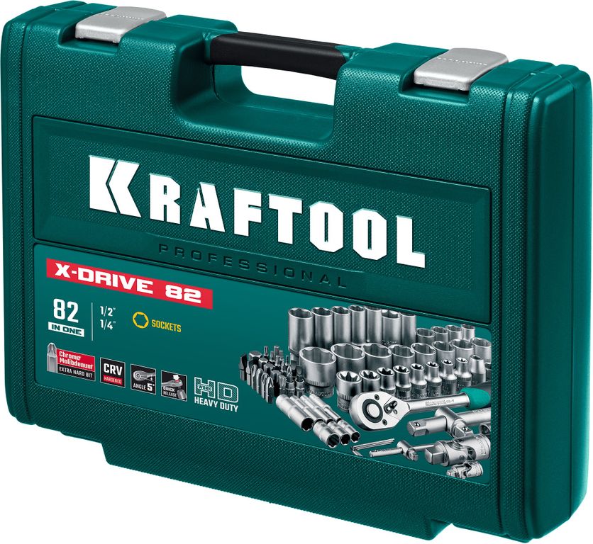 Универсальный набор инструмента KRAFTOOL X-Drive 82, 82 предм., (1/2?+1/4?)