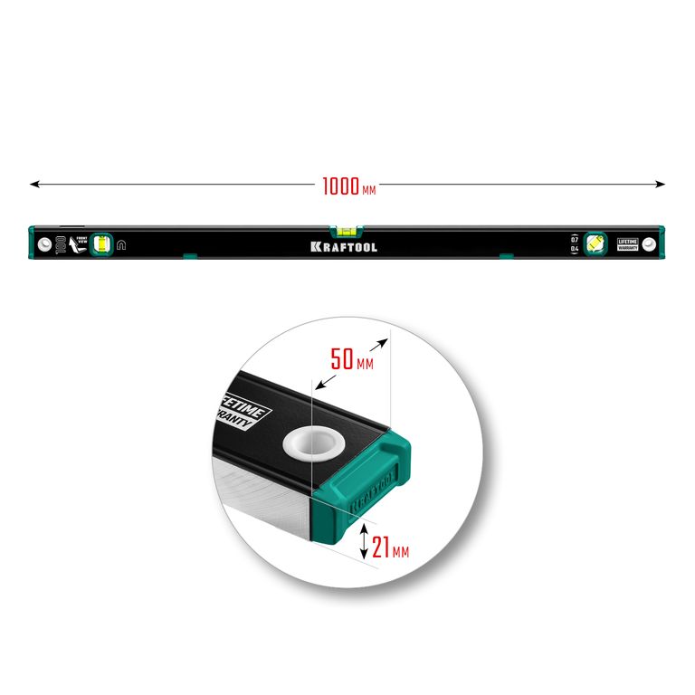 Магнитный уровень KRAFTOOL 1000 мм, усиленный профиль, с зеркальным глазком