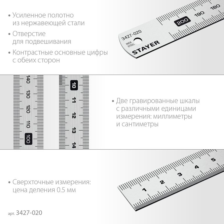 Нержавеющая линейка STAYER длина 0.2 м, Professional