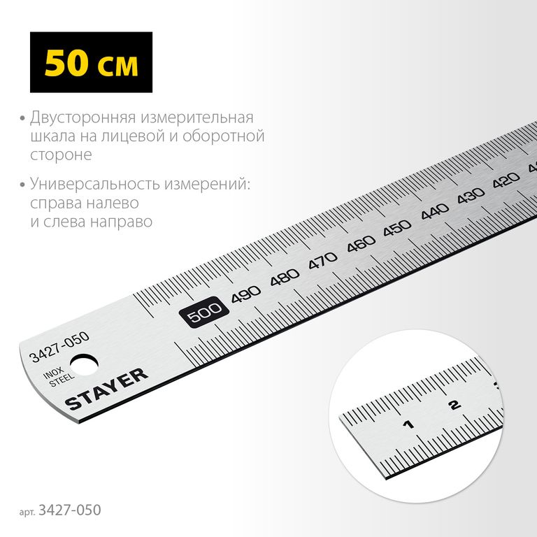 Нержавеющая линейка STAYER длина 0.5 м, Professional