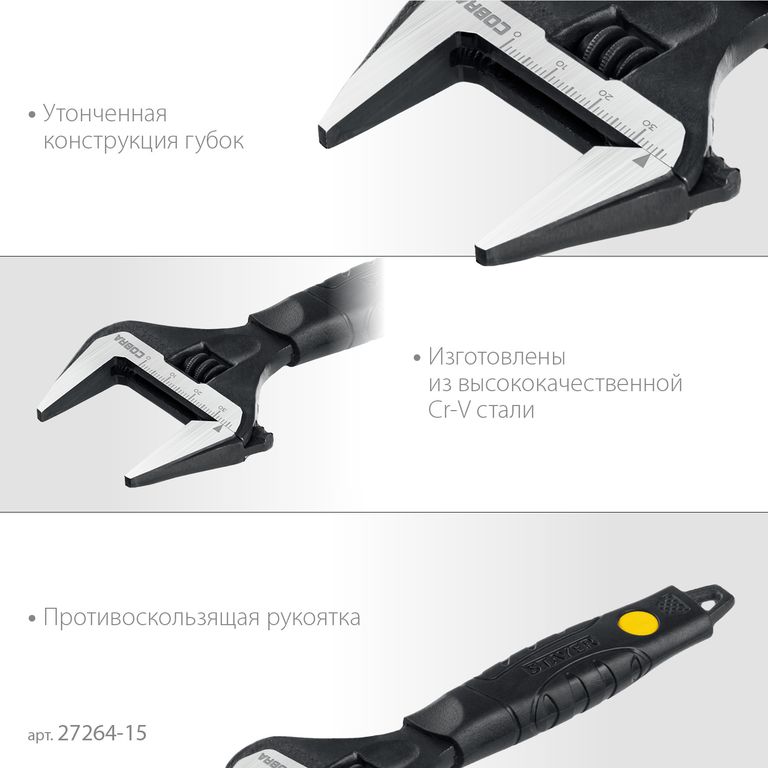 Разводной ключ 150/34 мм, STAYER COBRA Professional