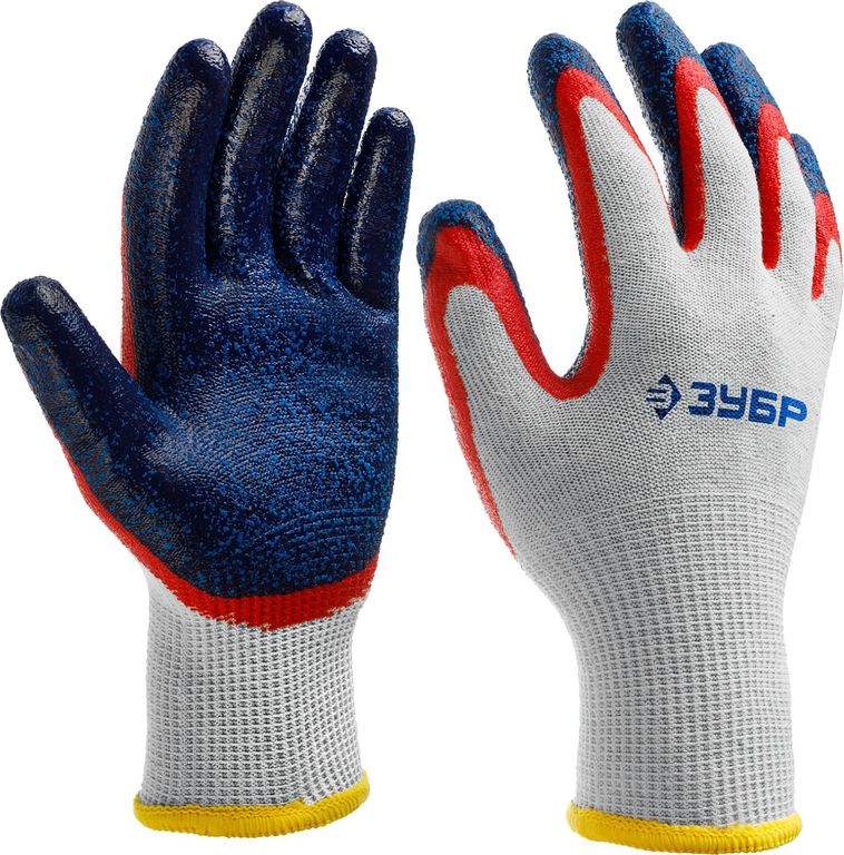 ЗУБР ЗАХВАТ-2 L-XL, х/б перчатки с двойным текстурированным нитриловым обливом, повышенная износостойкость, 13 класс, Профессионал (11454-XL)