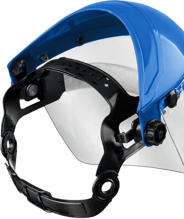 Щиток с наголовным креплением с подвижным стекло держателем (НБТП) предназначен для защиты от воздействия твердых частиц, искр, стружки, окалин, абразивов и брызг не разъедающих жидкостей.