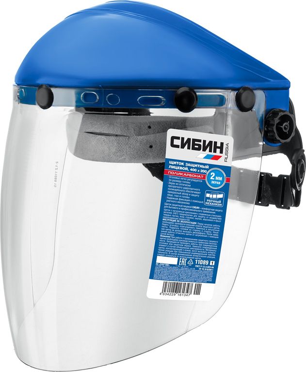 СИБИН экран 200 х 400 мм, поликарбонат 2 мм, с рейкой, защитный лицевой щиток (11089)