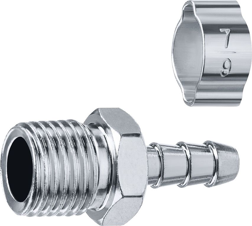 ЗУБР штуцер ?елочка?, 6 мм - 1/4?M, переходник с обжимным хомутом, Профессионал (64924-1/4-06)